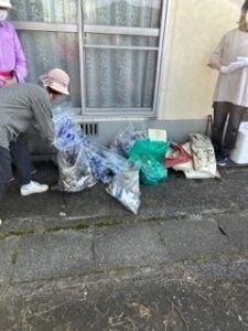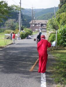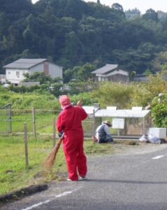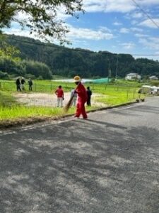 地域の皆様と力を合わせて広場や道路脇の草刈り、ごみ拾いなど行いました。