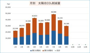 | 発電量 (kWh) | CO2削減量 (kg) | 発電量 (kWh) | CO2削減量 (kg) | |