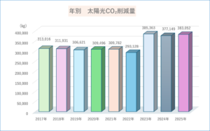 | 年 | 発電量(kWh) | CO2削減量(kg) |